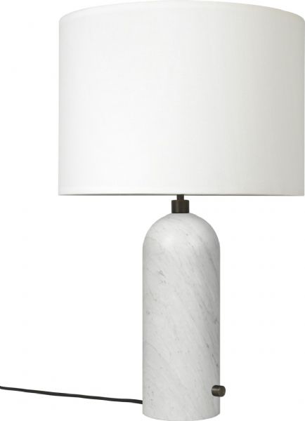 Beskrivelse Gravity bordlampe vælges mellem to forskellige størrelser. Begge størrelser fås med tre forskellige farver krop, nemlig sort stål, sort marmor og gråt marmor. Og alle varianterne fås med enten hvid skærm eller canvasskærm.Højde: 49 cm Dia: 30x20 cm Lysdæmper sidder på basen. Ledning: 2 meter E27 Max. 60w |