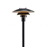 Beskrivelse Design: Poul Henningsen. Materiale: Overskærm: Optrukket rustfrit stål. Mellem/Underskærm: Optrukket rustfrit stål. Skærmholder: Formpresset glas. Pullertmast: Rustfrit stål. Farve: Sort Dimension: Diameter 283mm, højde 909mm. Lyskilde: Max 60W E27 |